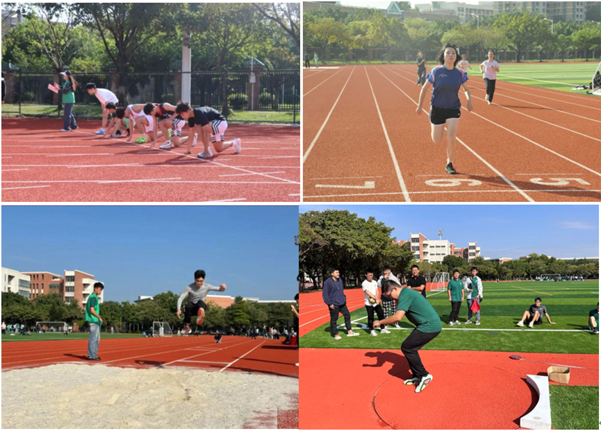 学生组比赛分为田赛、径赛以及趣味赛三大类别。赛场上,同学们全力拼搏、奋勇争先。跳远、铅球两个田赛项目充分展现出运动员的技术与力量。径赛项目的角逐中,既有展现同学们爆发力与协调性的100m、200m,也有考验同学们耐力与策略的800m,更有体现团队配合水平的4×100m接力。运动员们在场上的顽强拼搏既诠释了更高、更快、更强、更团结的体育精神,也是环院学子们力争上游、全力以赴的品质体现。趣味赛中同学们齐心协力,在多人多足和拔河比赛上进行角逐,展示了LG电子 学子的蓬勃朝气与活力。