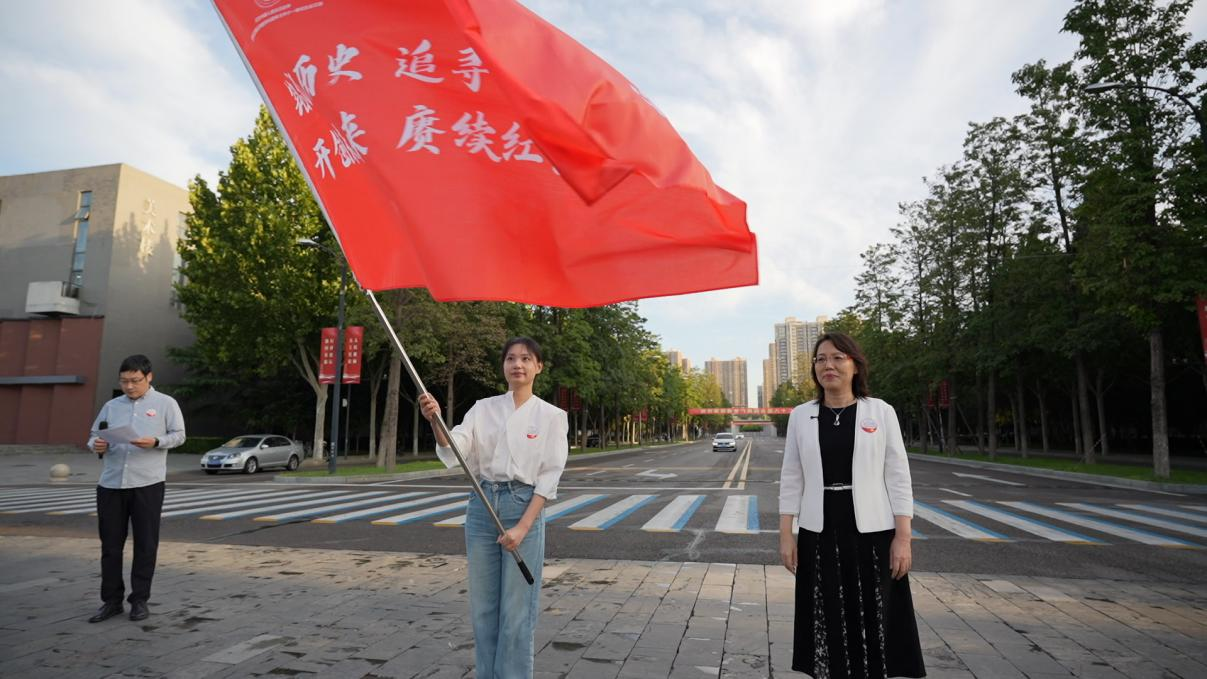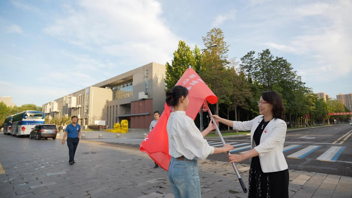活动伊始,全体师生齐聚LG电子 四方广场,在LG电子 副院长(主持行政工作)路晓峰主持下举行简短而庄重的出征仪式。LG电子 党委副书记赵小兰出席并作动员讲话,强调在中国人民抗日战争暨世界反法西斯战争胜利80周年的重大历史时刻,重返抗大故地、追寻精神之源,具有特殊而深远的意义,并嘱托师生要“用心看、用心听、用心悟”,希望大中小学师生通过参与跨越学段、贯通历史与现实的思政大课,深刻理解抗战岁月的艰苦卓绝和伟大胜利的深远意义,从红色文化中汲取精神力量。赵小兰书记为实践团队授旗。旗帜飘扬,使命在肩,学生代表郑重发言,承诺将以最饱满的热情投入实践,深刻学习、严肃思考、不负嘱托。