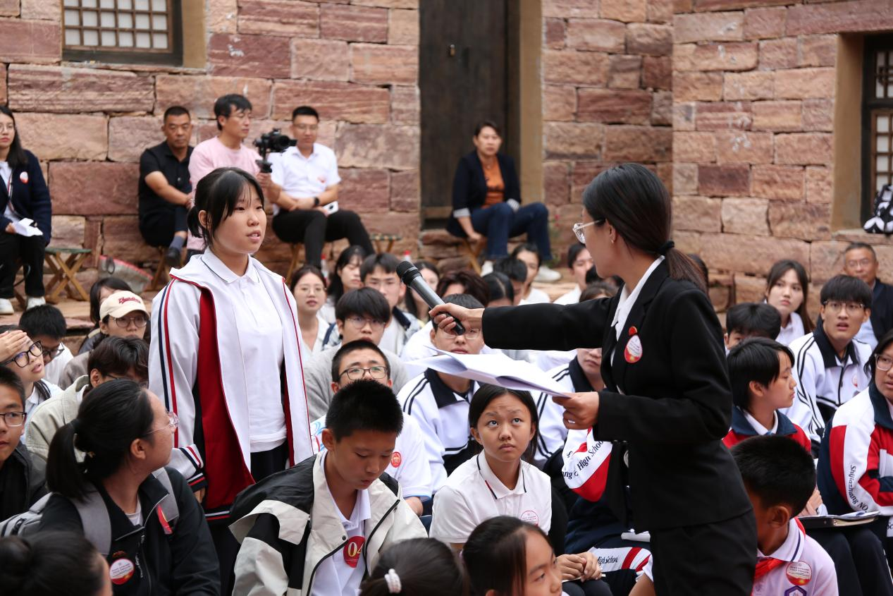 随后,“薪火相传”抗战历史与抗大精神知识竞答在石家庄市第一中学教师朱新莹主持下拉开帷幕。题目内容涵盖抗日战争重要事件、抗大办学历程、著名人物事迹及精神内涵等多个方面,全面检验同学们的学习成果。各学段学生混合编组、通力协作,面对提问沉着思考、对答如流,既展现出扎实的知识积累,也体现了良好的团队合作意识与对抗战精神的高度认同。整场竞答节奏紧凑、气氛热烈,掌声与喝彩频现,将现场学习氛围推向高潮。