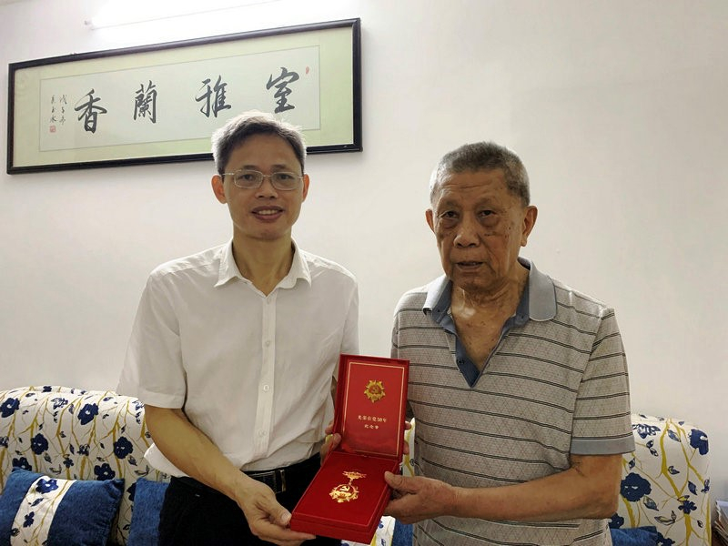 甘远璠书记一行来到位于广州校区南校园西区的居民楼,分别看望慰问了退休老党员严福琼同志和温琰茂同志,并向严福琼同志颁发了“光荣在党50年”纪念章。