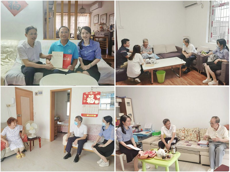 甘远璠书记、彭灵灵副书记一行看望慰问曾令初(左上图)、吕瑞芝(右上图)、杨广杏(左下图)、汪晋三(右下图)等退休教师代表