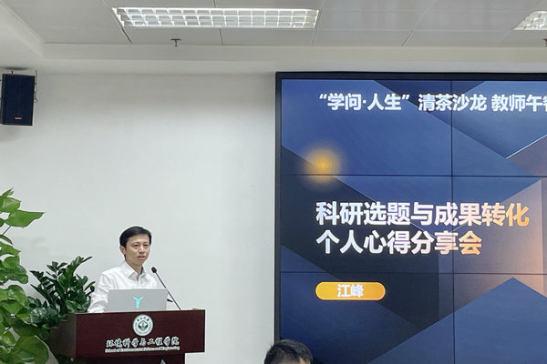 会上,江峰教授通过科研成果转化目的、科研成果研发方式、科研成果转化方法、成果转化的项目案例及成果转化的个人经验五个方面进行分享。