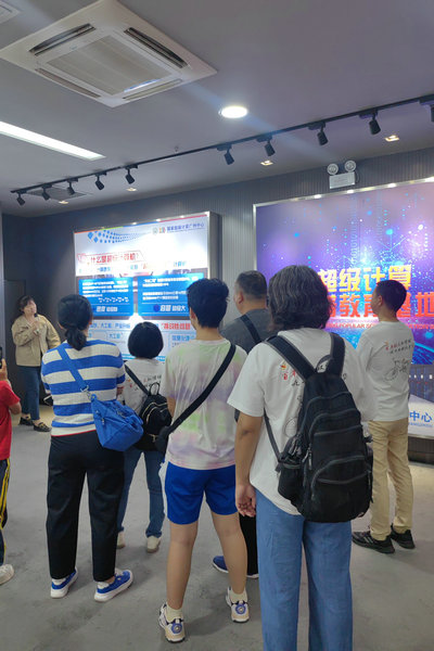 随后,校友们兴致勃勃地带领着下一代参观了坐落于东校园的国家超级计算机中心。在这里,他们了解了超级计算机的发展历程,特别是天河二号创下的辉煌历史,以及它在国防、环境、医药、人工智能等领域的重要作用。这次参观不仅在孩子们心中种下了探索科技的种子,也为校友们提供了探索未知世界的资源。